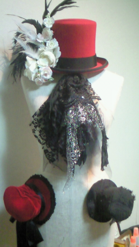 シルクハットやミニハットの頭飾りから、手袋など。小物を出店します。